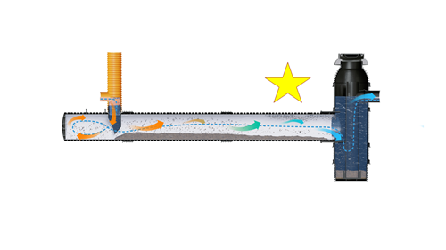 Systemets patenterede indløbsmodul leder vandet bagud og forlænger på den måde vandets vej gennem systemet. Samtidig sænkes vandets hastighed, og sedimenterne har dermed længere tid til at bundfældes. Systemets udformning sikre et tilstrækkeligt langsomt flow til at undgå ophvirvling af tilbageholdt materiale, selv under store regnbegivenheder.
